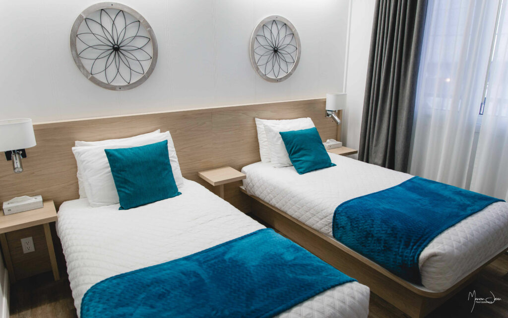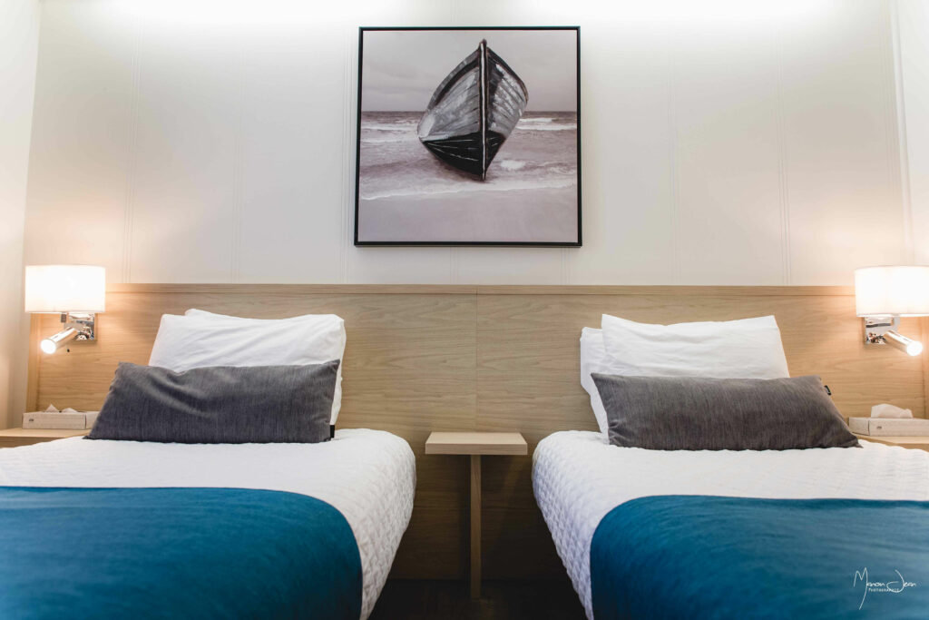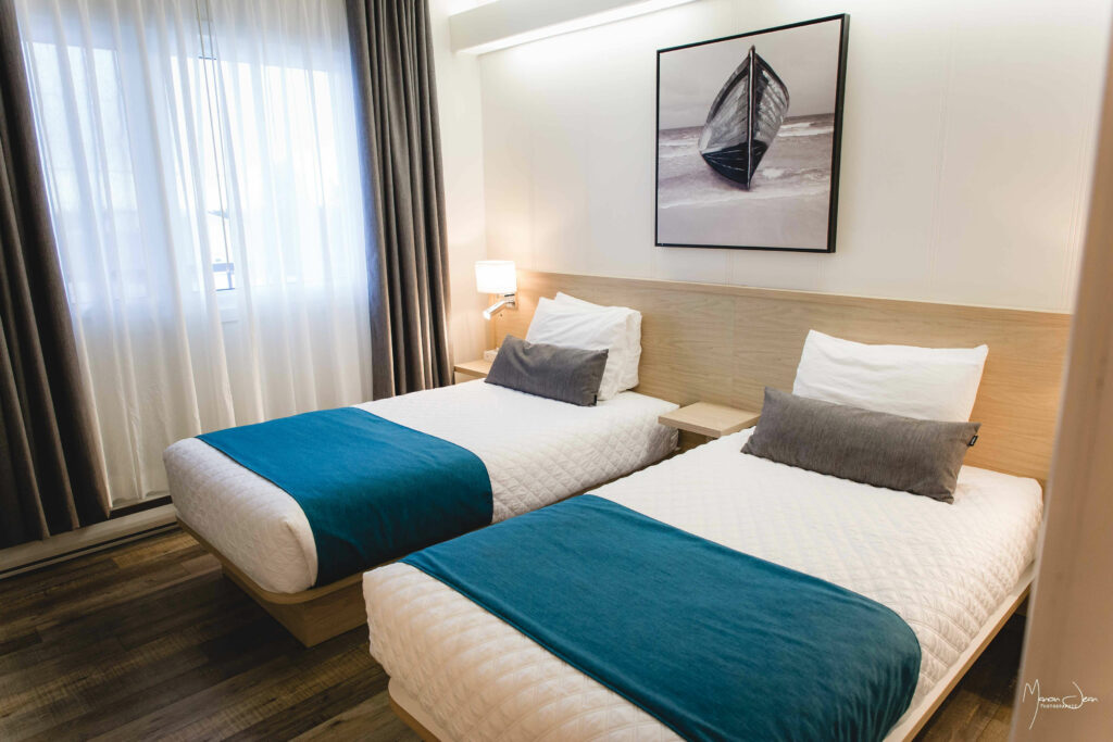 Chambre idéal pour amis, collègue, parent/enfant qui voyage ensemble. Chambre à 2 lit 1 place (jumeau), salle de bain avec douche, produits d'hygiène corporelle, lampes de lecture